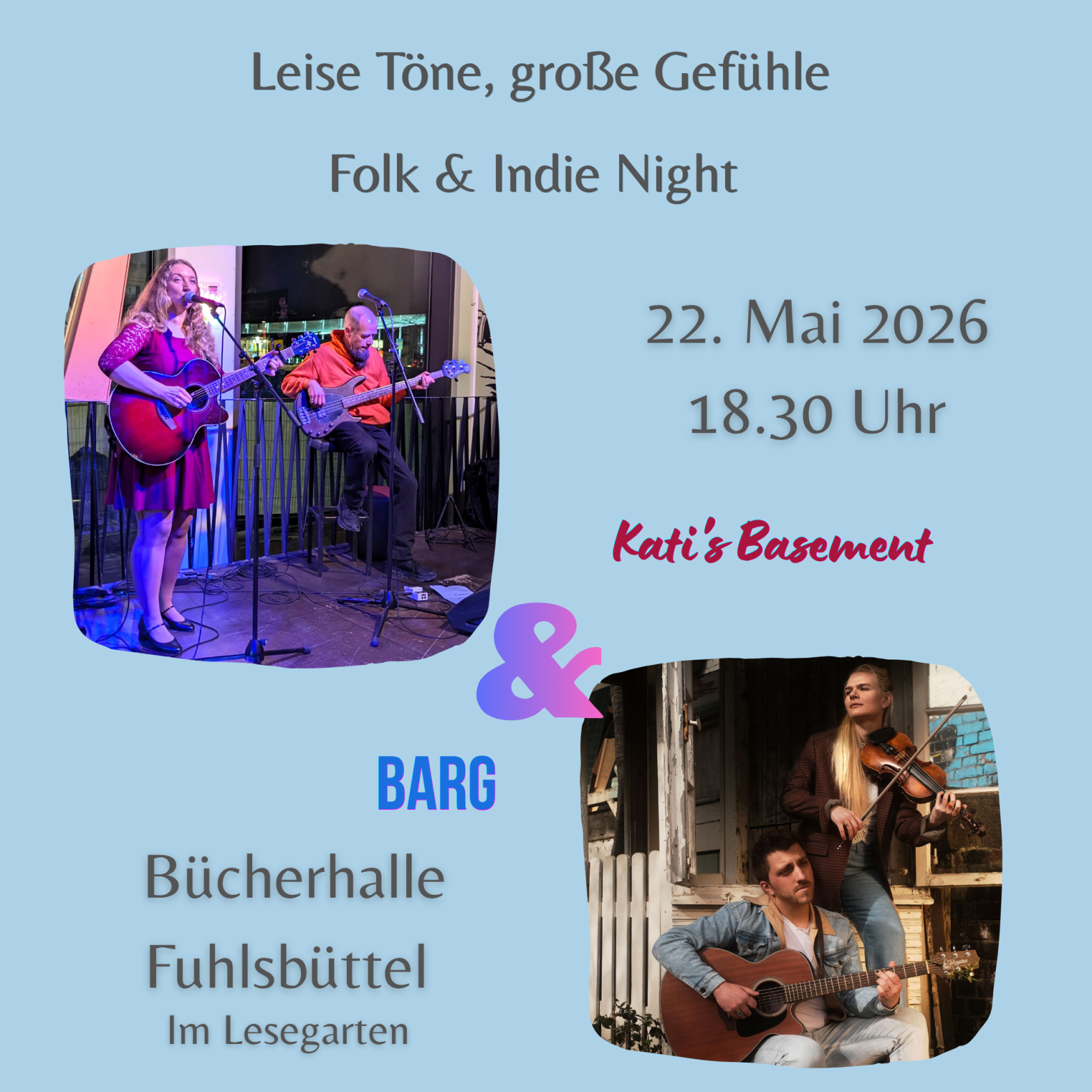 Soft sounds, big emotions: Kati’s Basement will be performing alongside the folk-rock duo Barg at the Fuhlsbüttel Library.
